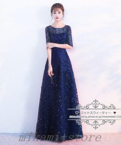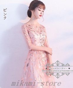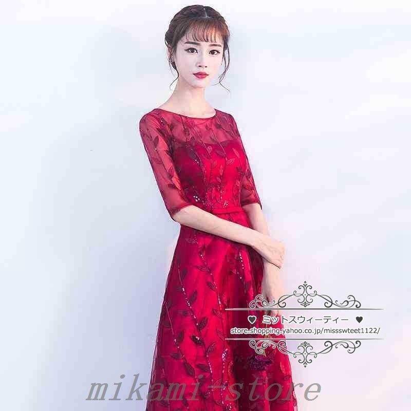 【値下げ】カラードレスカクテルドレスリーフ5分袖ロングドレスパーティードレス発表会演奏会ステージドレスコンクールイブニングドレスフォマール